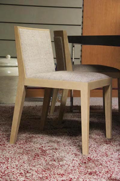 Sillas, acabado en roble natural macizo, tapizado en beige